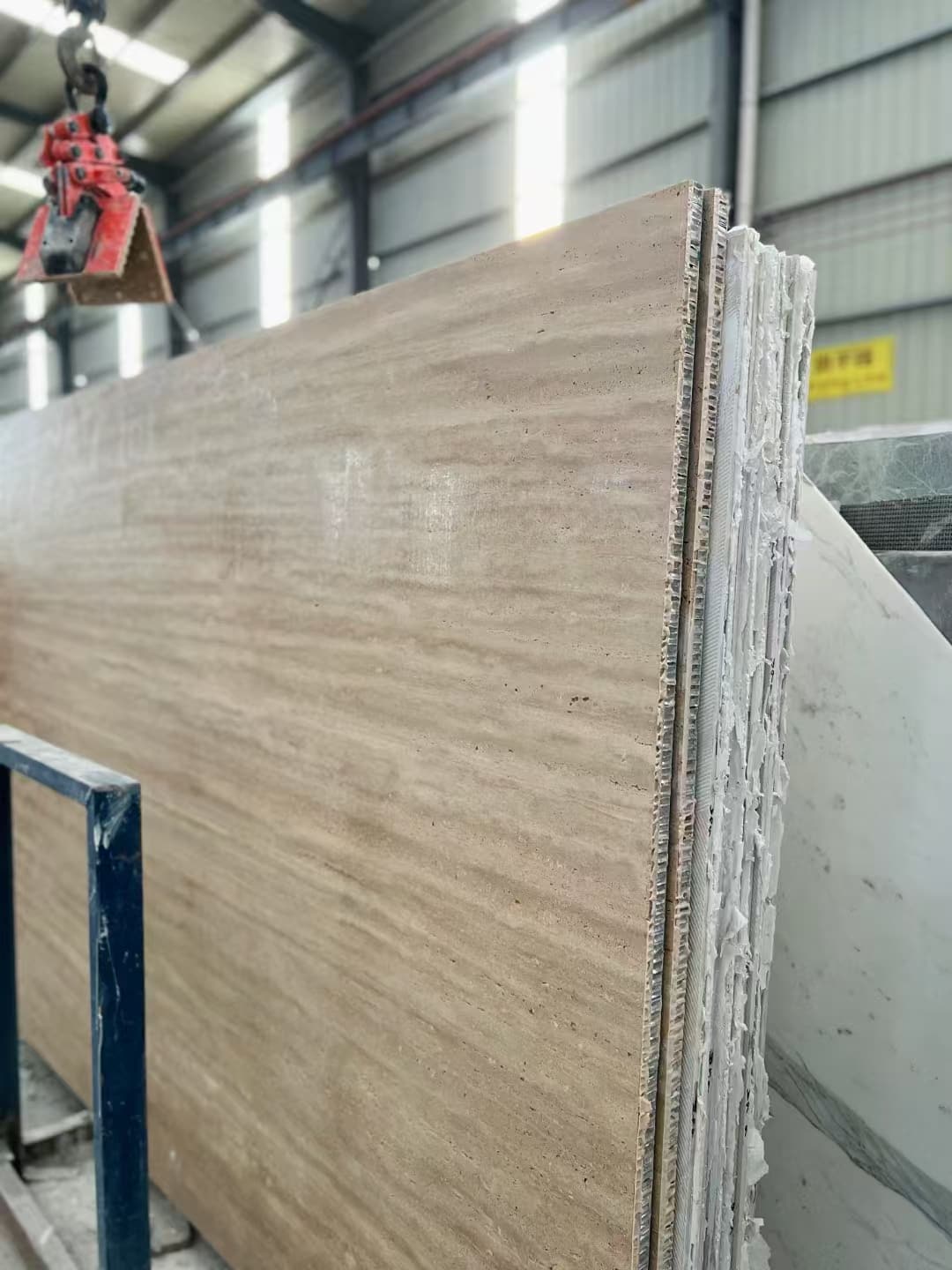 Travertine backed sintered stone