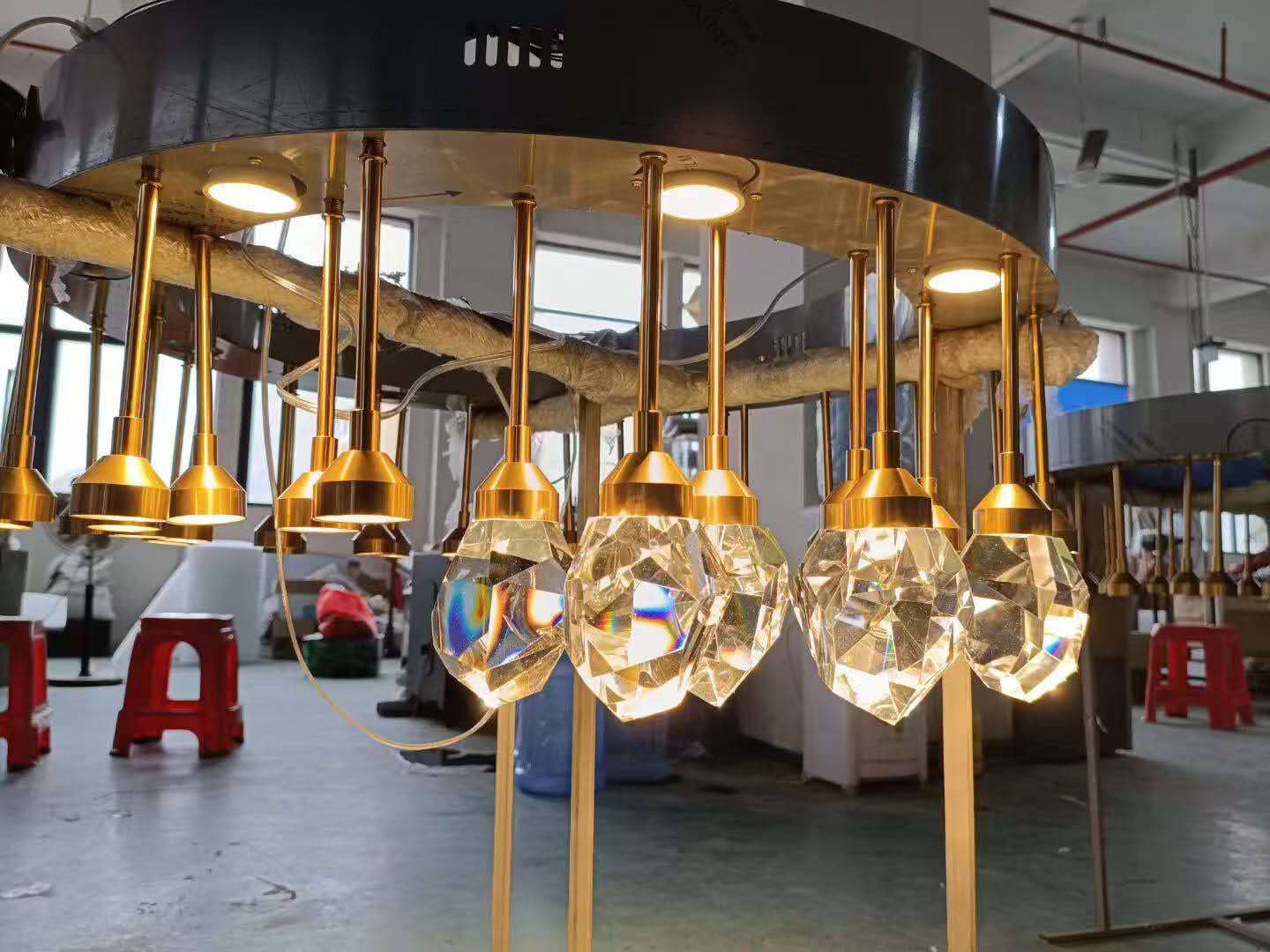 Modern Geometric Pendant Lamp with Gold Frame for Dining Room & Office