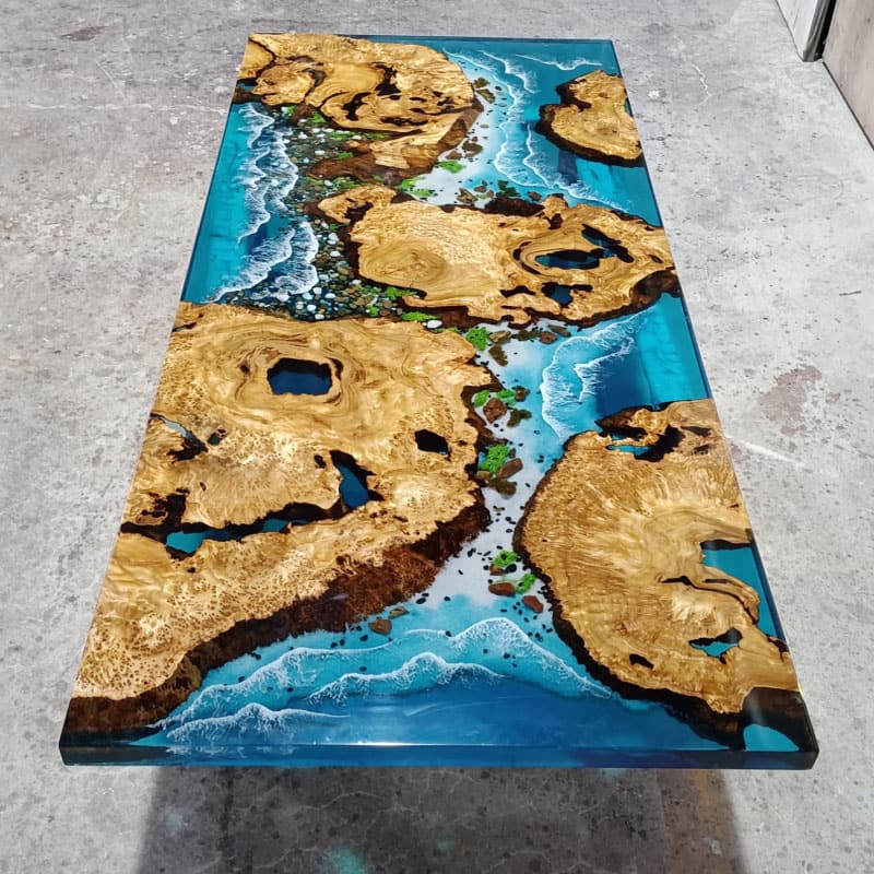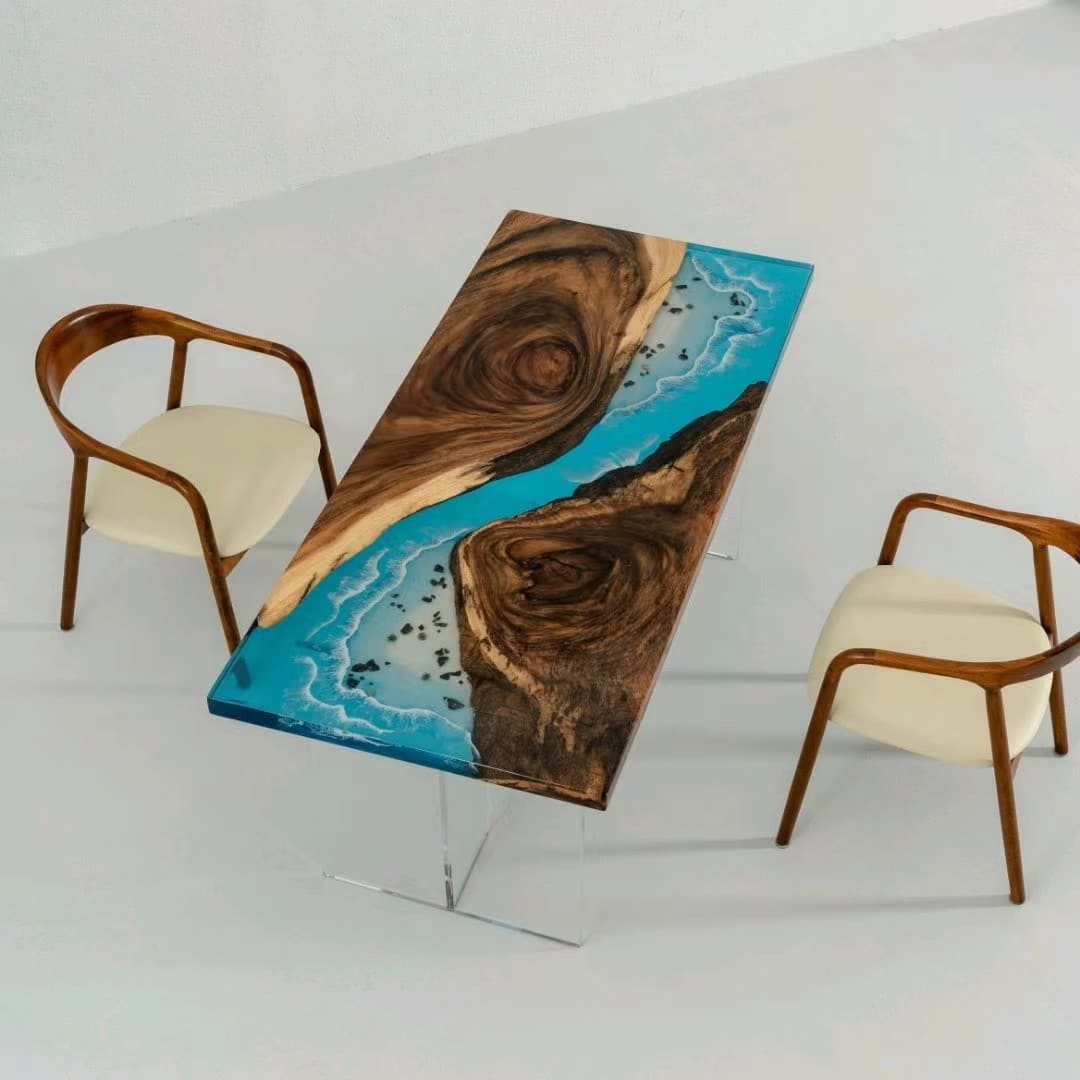 Hot Selling Eco-Friendly Resin Blue Square Solid Wooden Coffee Shop Cafe Table